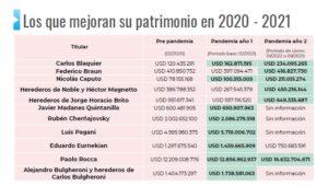 Esos cuatro foros a los que decidió asistir Guzmán reúnen, como impulsores o participantes, a la mayoría de los 16 grupos empresariales objeto de la descomunal investigación emprendida en forma conjunta por el Centro de Economía Política (CEPA) y la fundación socialdemócrata alemana Friedrich Ebert, sobre “Estructura Corporativa y Riqueza en la Argentina”. Todos ellos son concentrados, diversificados, transnacionalizados, exportadores, con empresas en guaridas fiscales, capacidad de fijar precios en el mercado interno, manejo de divisas, fuga de capitales y evasión impositiva. Para los interesados, aquí pueden leer una síntesis ejecutiva y aquí el trabajo completo. Sus autores, Hernán Letcher, Julia Strada y Leandro González descubrieron que la mayoría de los 16 casos estudiados, incrementaron sus ganancias en los años de la pandemia. Estos fueron los 16 elegidos (entre los primeros 50 patrimonios de la Argentina en 2020 según el ranking de Forbes: