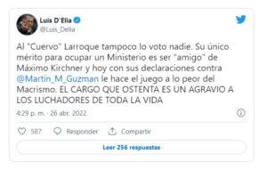 Una vez más, fue Andrés Larroque quien puso los puntos sobre las íes, al afirmar que a Guzmán no lo votó nadie y que el ministro de Economía no puede ser quien conduzca una coalición. “El 27 de octubre de 2019 [día de las elecciones presidenciales] no lo conocía, no sabía de él” y “en 2021 hubo un veredicto contra su política”. El Poder Ejecutivo ha decidido no contestar afirmaciones de ese tipo en forma directa, sino por medio de artículos periodísticos o de voceros oficiosos, sin responsabilidad institucional. Esta fue la respuesta más directa.