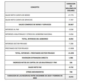 Un análisis del balance cambiario del Banco Central desde la asunción del actual gobierno hasta la fecha de los últimos datos públicos, en febrero de este año, indica que en esos 27 meses, las reservas internacionales no sólo no crecieron, pese al saldo positivo de la balanza comercial, sino que disminuyeron en 7.000 millones de dólares, según este detalle, compilado por la consultora Analogías.