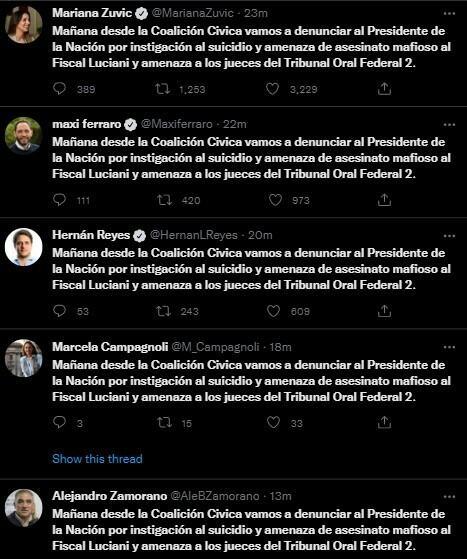 Por supuesto que todas aquellas abiertas defensas fueron rechazadas por los referentes de la oposición. Tal es el caso del intendente de Lanús, Néstor Grindetti, quien repudió los dichos del Presidente y se paró del lado del fiscal acusador.