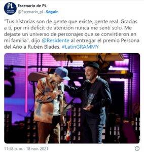 El premio se lo entregó uno de sus grandes admiradores: el portorriqueño Residente, de calle 13.