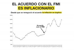 También graficó lo que El Cohete viene diciendo desde que se renegoció la deuda con el FMI: ese acuerdo es inflacionario, porque obliga a devaluar el peso, subir la tasa de interés e incrementar las tarifas. Y también recesivo. Lo peor de cada mundo.