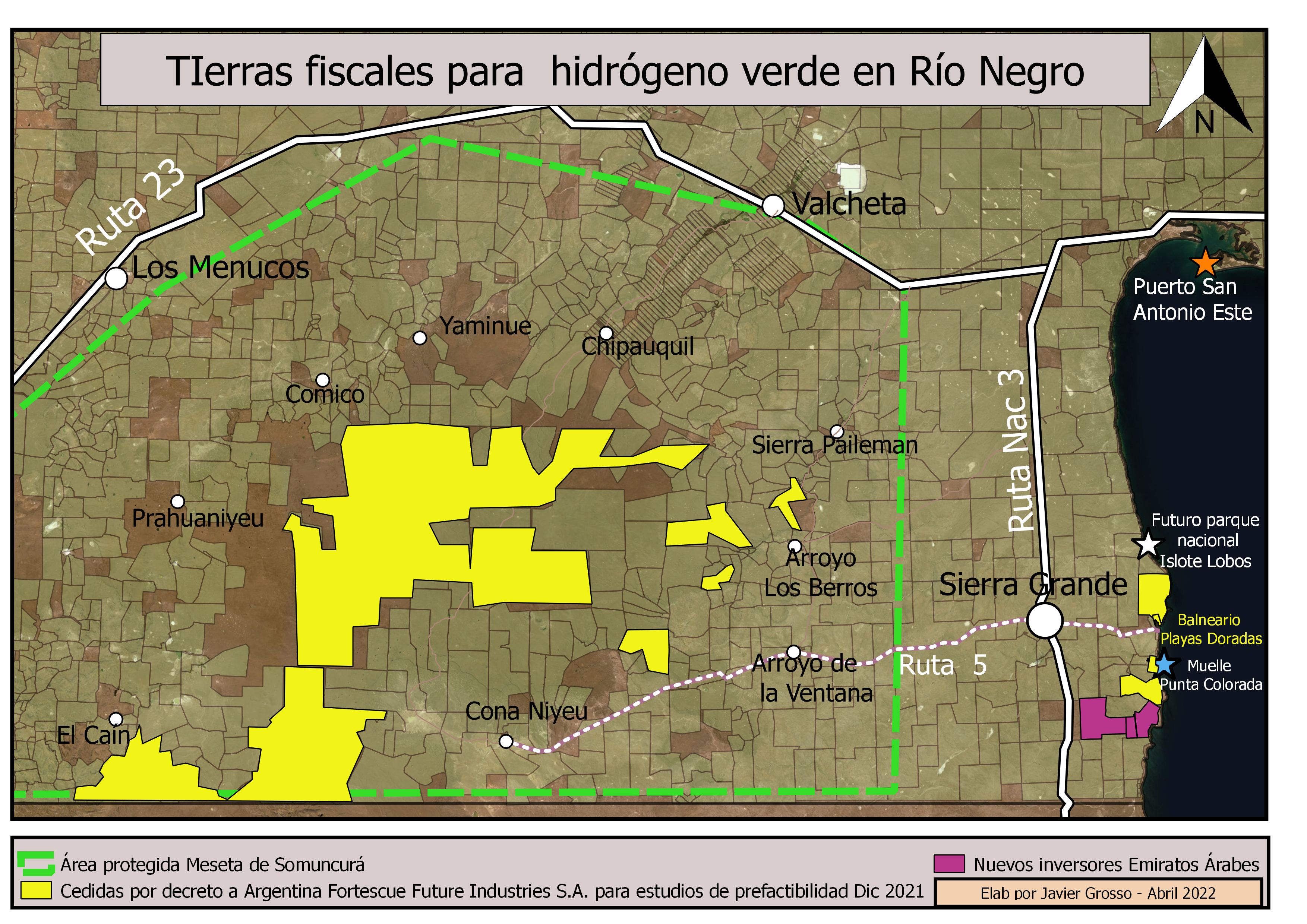 Por el decreto 1423, en noviembre del año pasado el gobierno provincial ya otorgó aproximadamente 400.000 hectáreas de tierras fiscales a Fortescue en concesión por un año para realizar los estudios de prefactibilidad vinculados al proyecto. Ni en ese decreto, ni en el proyecto ingresado la última semana a la Legislatura el gobierno indicó que esas tierras están comprendidas por la Ley General de Tierras Públicas 279 y, en muchos casos, alcanzadas por la Ley Integral del Indígena 2287 y el plan de manejo del Área Natural Protegida Meseta de Somuncurá, por mencionar algunas normas vigentes.