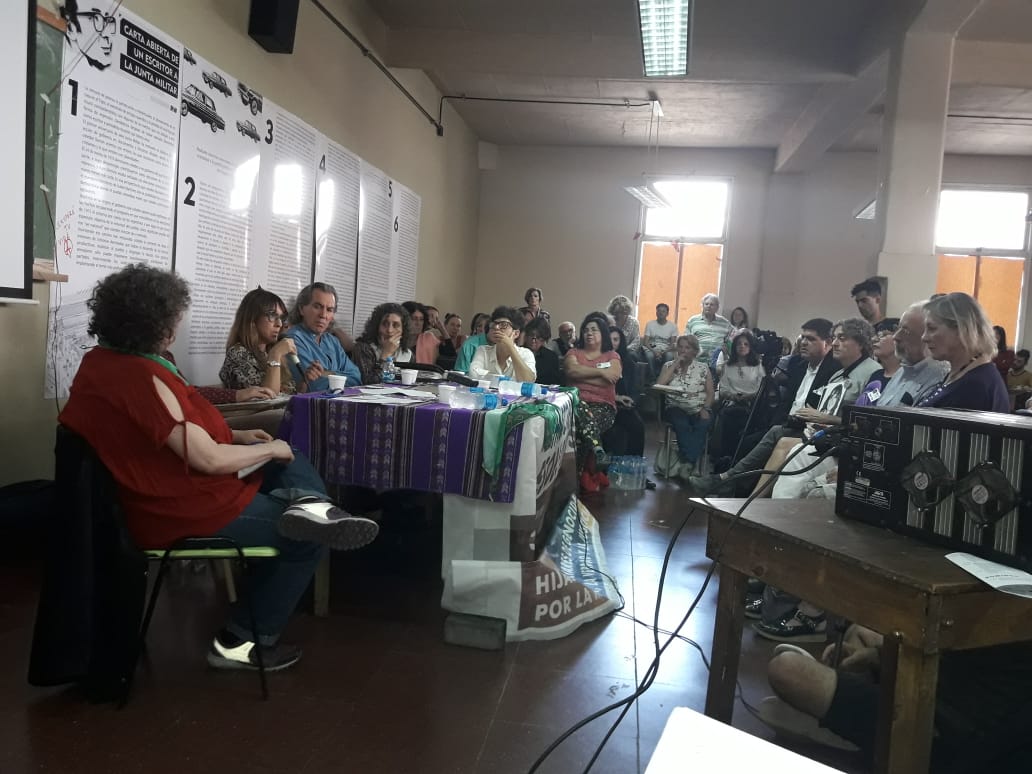 Lorna Milena, que convirtió una camiseta paterna en pañuelo blanco para acudir a la Plaza del 2x1, dijo que "la voz del padre es la voz de mando, de eso están hechos los silencios". Continuó Lili Furió, integrante del múltiples espacios de feminismos, que reunió los documentos de la ex DIPBA para datar la persecución a las disidencias sexuales. ("Demasiado artificial —quedaba asentado—, amanerado, temperamento afeminado, nunca se lo ve acompañado del sexo opuesto".) "La elección sexual fue una causa de persecución, así se castigaban a las sexualidades no heteronormativas", dijo. Esa persecución con mujeres también castigadas por militantes y por desobedecer el orden machista establecido, "es el mismo que opera hoy con un sustrato de esa violencia que se repite en cada femicidio".