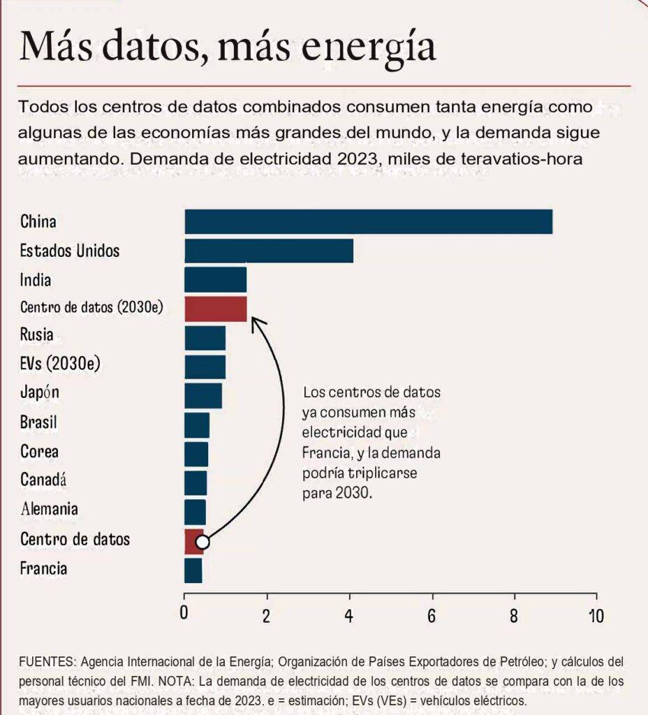 En el norte de Virginia, el mayor centro de datos del mundo, los centros de datos ya consumen aproximadamente una cuarta parte de la energía del Estado, lo que obliga a las empresas de servicios públicos a retrasar o cancelar otras conexiones. El aumento de las facturas de electricidad se convirtió en un punto crítico en la carrera por la gobernación del Estado. En Irlanda, el operador de la red de Dublín congeló nuevos proyectos en 2022, aprobando solo aquellos que pudieran generar su propia energía. Singapur suspendió por completo las aprobaciones en 2019 y ahora permite instalaciones solo bajo estrictas normas de eficiencia.