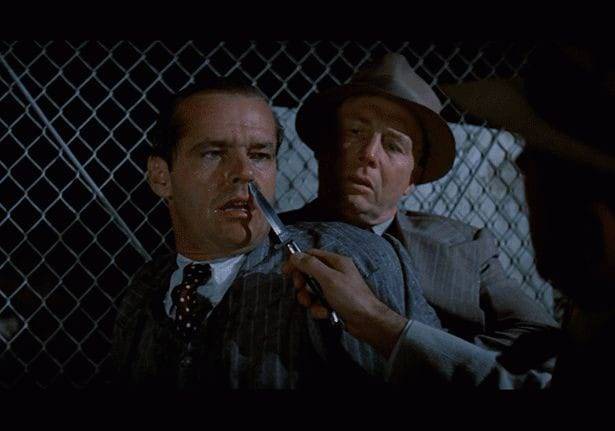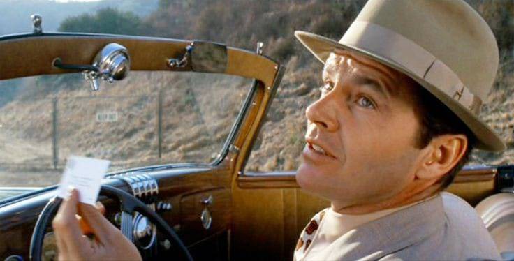 Pero desde el principio Towne y Polanski, a través de Nicholson, sugieren que Gittes no es necesariamente lo mismo que sus modelos. Pronto se establece que es tan buen detective como Spade y Marlowe. Sin embargo, también se evidencia que es un tipo un tanto pagado de sí mismo. A Gittes le encanta saber siempre más que los demás. Puede que además le gusten las pilchas y la buena vida un pelín más de lo recomendable. Y que su sentido del humor sarcástico, que ama usar en contra de los ex colegas que siguen formando parte de la policía y cobrando sueldos de mierda, le gane más enemigos que amigos. Todo esto, sin contar la experiencia traumática que constituye su talón de Aquiles. Porque Gittes dejó de ser cana y prosperó pero no a consecuencia de una decisión meramente profesional, sino para alejarse de una historia sórdida. Cuando todavía era policía, quiso ayudar a una mujer —metió la nariz donde no debía, por así decir— y terminó produciendo lo contrario de lo que buscaba.