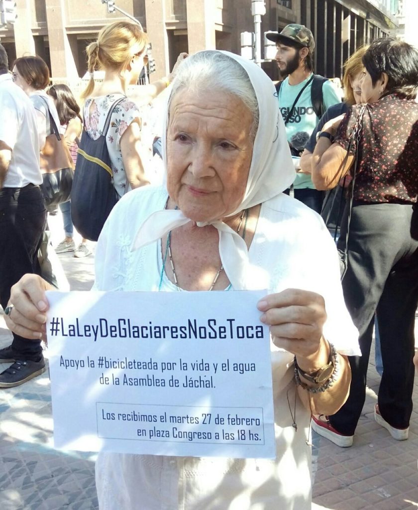 Altos funcionarios del gobierno nacional han manifestado su intención de derogar o modificar restrictivamente la actual Ley Nacional de Protección de Glaciares, para reducir las áreas protegidas y así favorecer a las grandes transnacionales mineras. La mayoría de los pueblos cordilleranos y precordilleranos, constituidos en asambleas vecinales, se mantienen en alerta y movilización en defensa de este patrimonio común, el agua, y sus fuentes, los glaciares y periglaciares sobre los cuales la megaminería metalífera desarrolla sus proyectos extractivos con destrucción de montañas enteras, y contaminación de arroyos y ríos que sustentan la vida de las poblaciones de todo el centro y oeste del país.