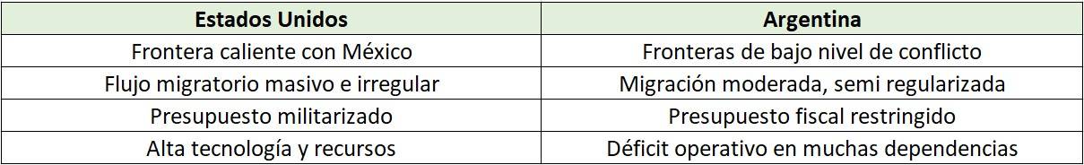 La Argentina no enfrenta los mismos flujos migratorios, conflictos fronterizos ni niveles de violencia narco que su contraparte del norte. Tampoco tiene la capacidad presupuestaria, la densidad institucional ni la infraestructura tecnológica que sustentan los modelos de control migratorio estadounidense. Aplicar ese esquema aquí, sin adaptación, es un gesto más simbólico que estratégico.