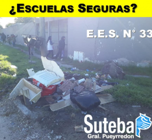 Claudia Luengo directora de la Escuela Secundaria nº 33, que comparte edificio con la Escuela Primaria nº 64, fue invitada a la sesión especial en la que se aprobó la Emergencia. “Las aulas no tenían puertas, les faltaban vidrios a las ventanas. Las ventanas de maderas se fueron pudriendo, las puertas de las aulas eran trapos colgando de los marcos, fuimos consiguiendo puertas a través de donaciones”. Recuerda que se fabricaron en la unidad penitenciaria nº 15 de Batán, “pero ninguna coincidía con los marcos, por lo que fuimos adaptando las bisagras como pudimos y ninguna de las puertas cierran. Si cierran no abren, más de una vez tengo un docente que llama por teléfono para avisarme que se quedó encerrado”.