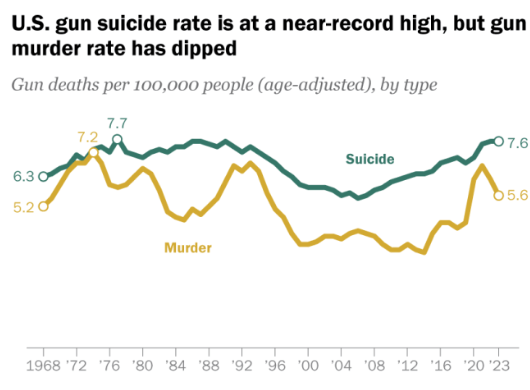 Dos aclaraciones: estos datos esconden que la tasa se eleva entre los afroamericanos (aproximadamente el triple que la de los ciudadanos blancos) y que la tasa es mayor entre los que tienen entre 25 y 29 años, siendo una de las principales causas de muerte en ese grupo etario.