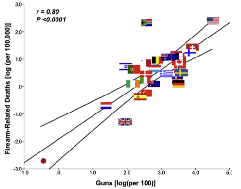 La tendencia y la relación entre la posesión de armas en la sociedad civil y las muertes causadas son espeluznantes.