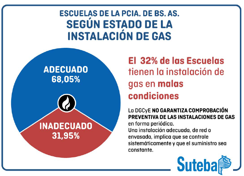Silvia Almazán, secretaria adjunta de SUTEBA, enumeró los distritos más afectados en la provincia de Buenos Aires: La Plata, Mar del Plata, Florencio Varela, Malvinas Argentinas, José C. Paz, San Martín, Tres de Febrero, Lomas de Zamora, el Partido de la Costa y Moreno. “Precisamente a once meses de la pérdida injusta de Sandra (Calamano) y de Rubén (Rodríguez), todavía hay 70 escuelas que tienen problemas con el gas”, dijo. “Esto también está impactando en el funcionamiento de los comedores escolares. No hay posibilidad de infusiones, de té o mate o algo calentito, pero tampoco de comidas preparadas”, agregó, destacando que afecta a los más vulnerables.