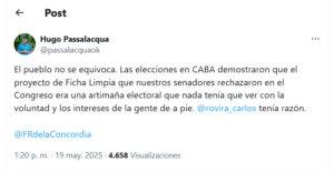 Quien se acordó de Lospennato terminado el escrutinio fue el gobernador de Misiones, Hugo Passalacqua: