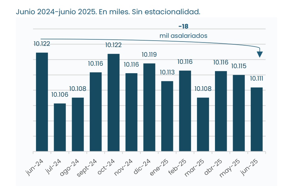 En el reverso de la práctica represiva se ubican los retrocesos en el empleo y el salario. Junio pasado, el último mes del periodo comprendido por el monitoreo de la CPM, registró una caída interanual de 18.000 puestos de trabajo formales.