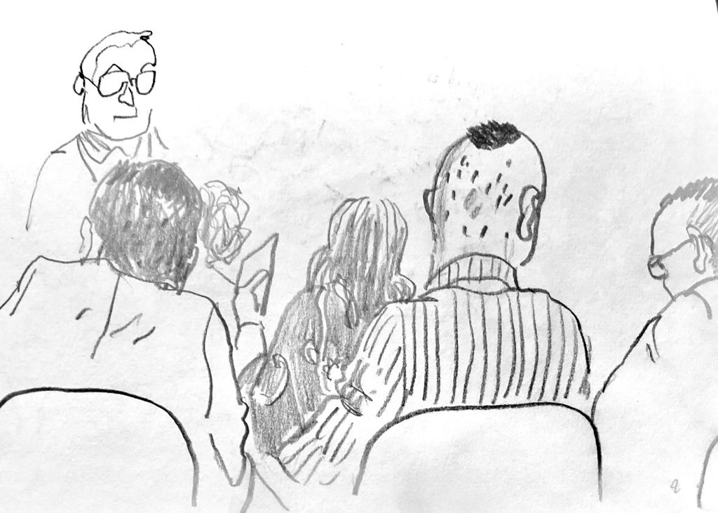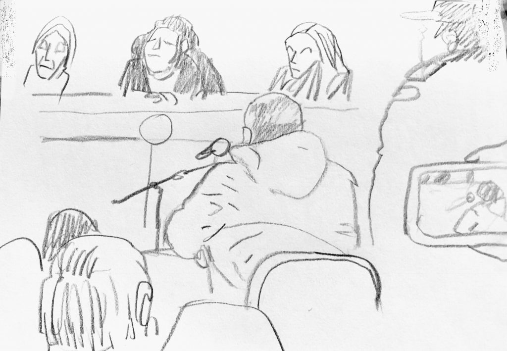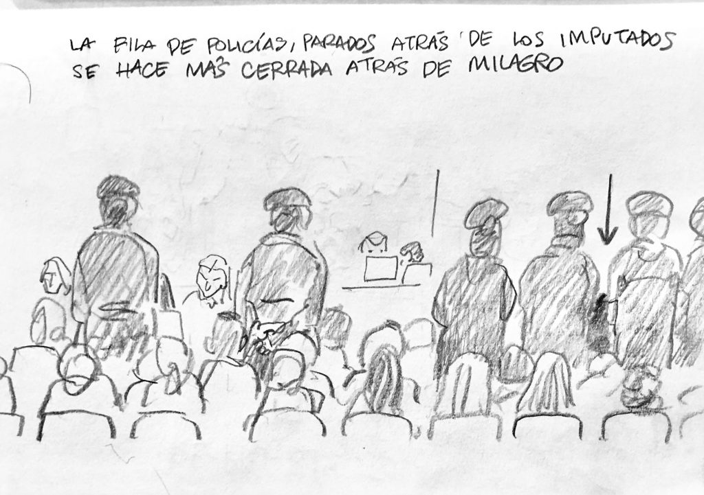La audiencia se retrasa como en los días anteriores. Tras el anuncio de restringir el acceso al público e impedir el acceso de la prensa, se percibe cierta resignación entre periodistas y asistentes. El de ayer fue quizá el último día de juicio público y todos saben que estará dedicado a la lectura de un requerimiento absurdo, con hechos espeluznantes, pero en formato soporífero con citas a fojas y artículos. Pero la resignación se explica por la constatación de que la maquinaria sigue su curso.