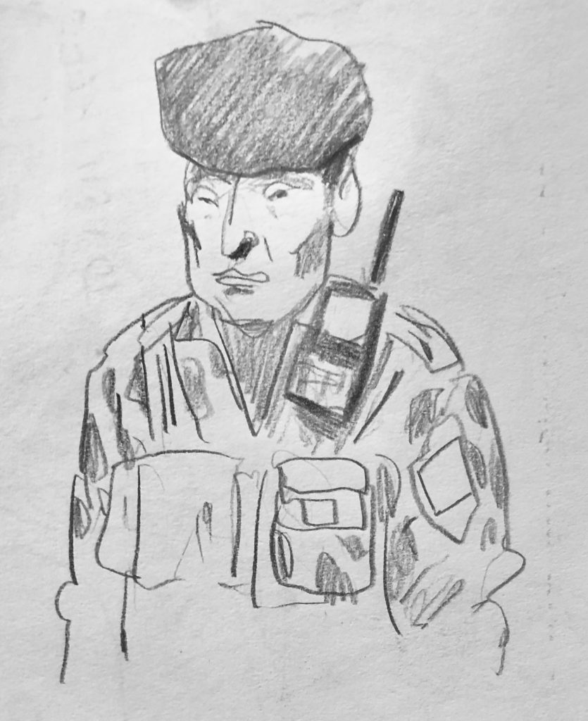 Tolaba además de su retrato con el 3,75, tiene que escuchar intermitentemente un megáfono ubicado a 50 metros de la sala, con una canción.