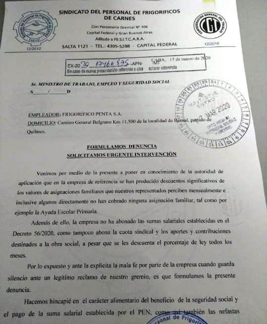 A sus trabajadores, preocupados por la pandemia, no sólo no les pagó sino que justificó su postura contra los delegados alegando que son “extorsionadores” que sólo quieren sacarle plata, que por eso los denunció.  Un informe que llegó a la gobernación bonaerense afirma que Bruzzese  despidió a los trabajadores para contratar otros más baratos y no sindicalizados, y que la represión fue iniciada por un grupo de policías contratados por la empresa como adicionales.
