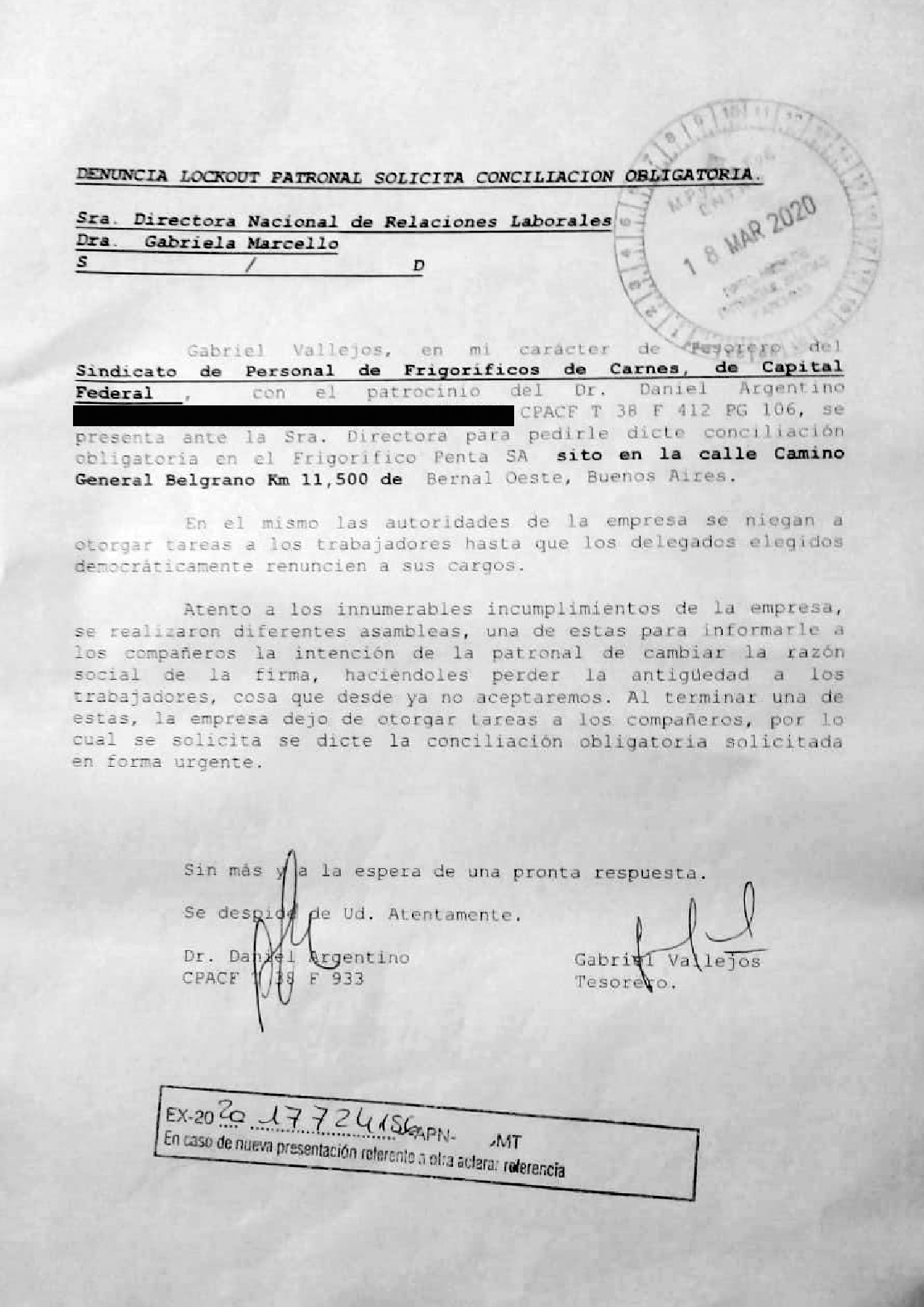 Los obreros dicen que la empresa quiere cambiar de razón social; si eso pasara, perderían su antigüedad. Ante su lógica oposición, la patronal presionó para que los delegados renunciasen y se negó a darles tarea. En respuesta, el gremio tramitó una conciliación obligatoria.
