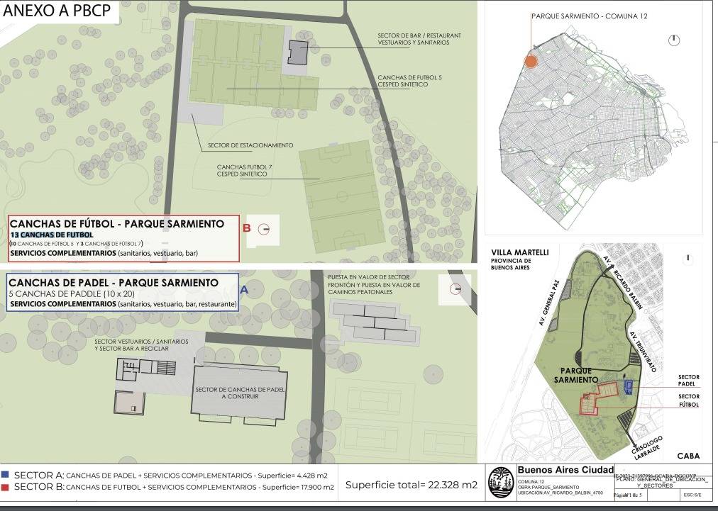 - Sector A: con una superficie a concesionar de 4.428 m2. Se autorizó a construir cinco canchas de paddle, en un área situada entre el ingreso de Avenida Triunvirato y el de Balbín, donde actualmente se encuentran canchas de tenis de cemento en estado de abandono. Allí también se construirán vestuarios y un sector de bar.