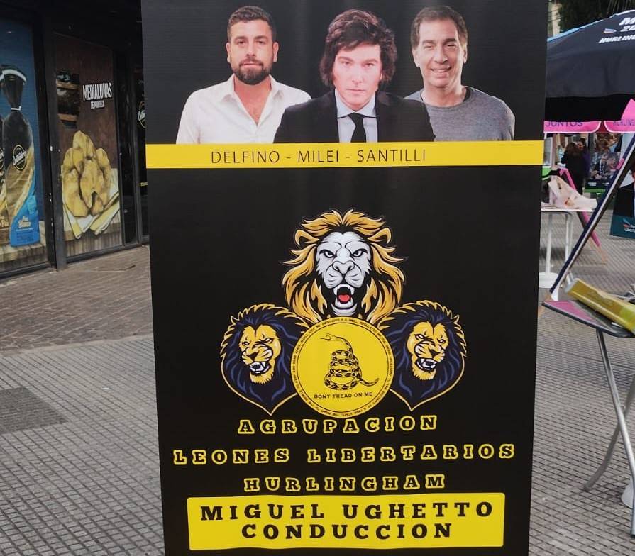 En Hurlingham, también de la Primera Sección electoral, difunden cartelería (¡con inscripciones en inglés!) donde la foto de Milei entre la de dirigentes de Juntos llama al corte local.