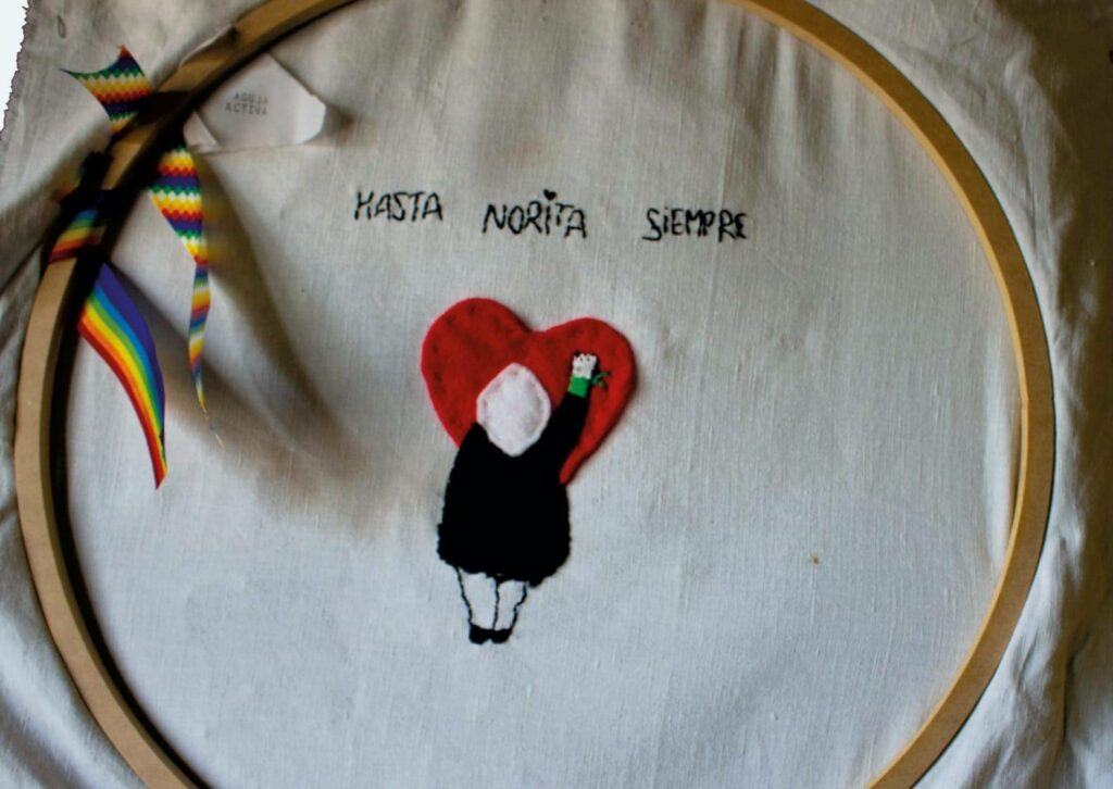 “El Costurero x la Memoria es una propuesta de encuentro donde compartiremos la labor del bordado colaborativo a fin de acompañar la lucha por la memoria, la verdad y la justicia, confeccionando una bandera de producción colectiva. Para participar sólo tienen que venir con su costurero y bastidor si lo tuvieran. No hace falta inscripción previa ni confirmación, solo ganas de compartir ese tiempo de vigilia y reflexión”.