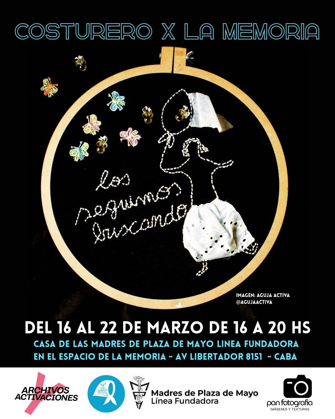 Costurero por la Memoria es también el nombre de la propuesta que las Madres de Plaza de Mayo Línea Fundadora llevarán adelante desde el lunes 16 hasta el domingo 22 de marzo, de 16 a 20, en su Casa de las Madres (Espacio de la Memoria ex ESMA, Libertador 8151), y a la que invitan a participar para conmemorar los 50 años del último golpe cívico-eclesiástico-militar.