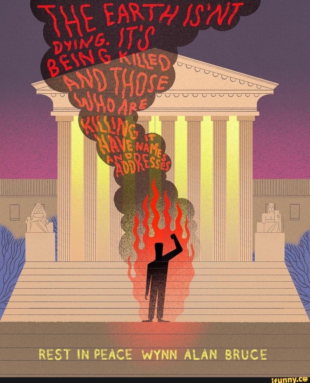 Para Wynn Bruce lo superlativamente importante era alertar sobre el daño que sufre el planeta. Por eso eligió convertirse en antorcha el viernes 22, Día de la Tierra (Earth Day). Pero también quería denunciar la complicidad de la Corte Suprema. La Corte conservadora —que saltó a las primeras planas del mundo poco después, cuando trascendió que planea borrar la Historia con el codo e ilegalizar el aborto en Estados Unidos—, delibera en torno a un caso que restringiría y hasta eliminaría la autoridad de la agencia gubernamental del medio ambiente (EPA, Environmental Protection Agency). Eso bloquearía la posibilidad de que el Estado pueda hacer algo para limitar el daño climático. Por eso Wynn Bruce eligió ese lugar para inmolarse: la ciudad de Washington, capital de los Estados Unidos, en la plaza que queda frente a la sede de la Corte Suprema.