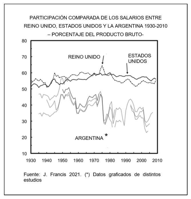 Esto queda claramente establecido en la trayectoria comparada que muestra el siguiente gráfico, cuyo resultado es que en 1930 nuestro PIB per cápita era algo más que tres tercios del norteamericano, en tanto que ahora andamos en un tercio: