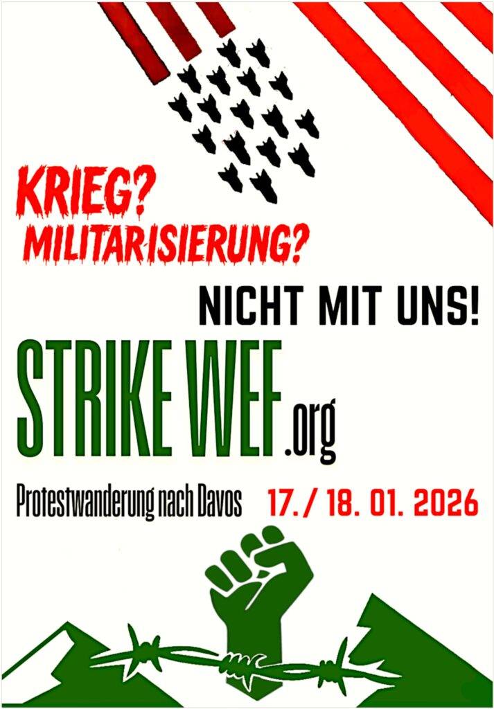 Por su parte, varios grupos juveniles y anticapitalistas han convocado una manifestación en las calles de Berna el 17 de enero. Y entre el 23 y el 30, también en Berna, se realizará el ya habitual “Tour de Lorraine” (Recorrido por la Lorraine), movilización con actividades políticas, sociales y culturales en ese barrio alternativo de la capital suiza. El afiche de convocatoria dice: “¡Formen pandillas coloridas! ¡Fortalezcan la resistencia en solidaridad! ¿Cansado del ambiente de crisis? ¿Aún tienes esperanza, o ya te has dado por vencido? Sea como sea, ¡ya es hora de unir fuerzas!”. Los convocantes responden: “¡Estamos convencidos de que juntos somos fuertes! Para lograrlo, debemos explorar puntos en común y forjar alianzas. Varios principios compartidos nos sirven de base, tal como lo indica el programa del Tour de Lorraine: la solidaridad cotidiana, la sostenibilidad y la justicia global”.