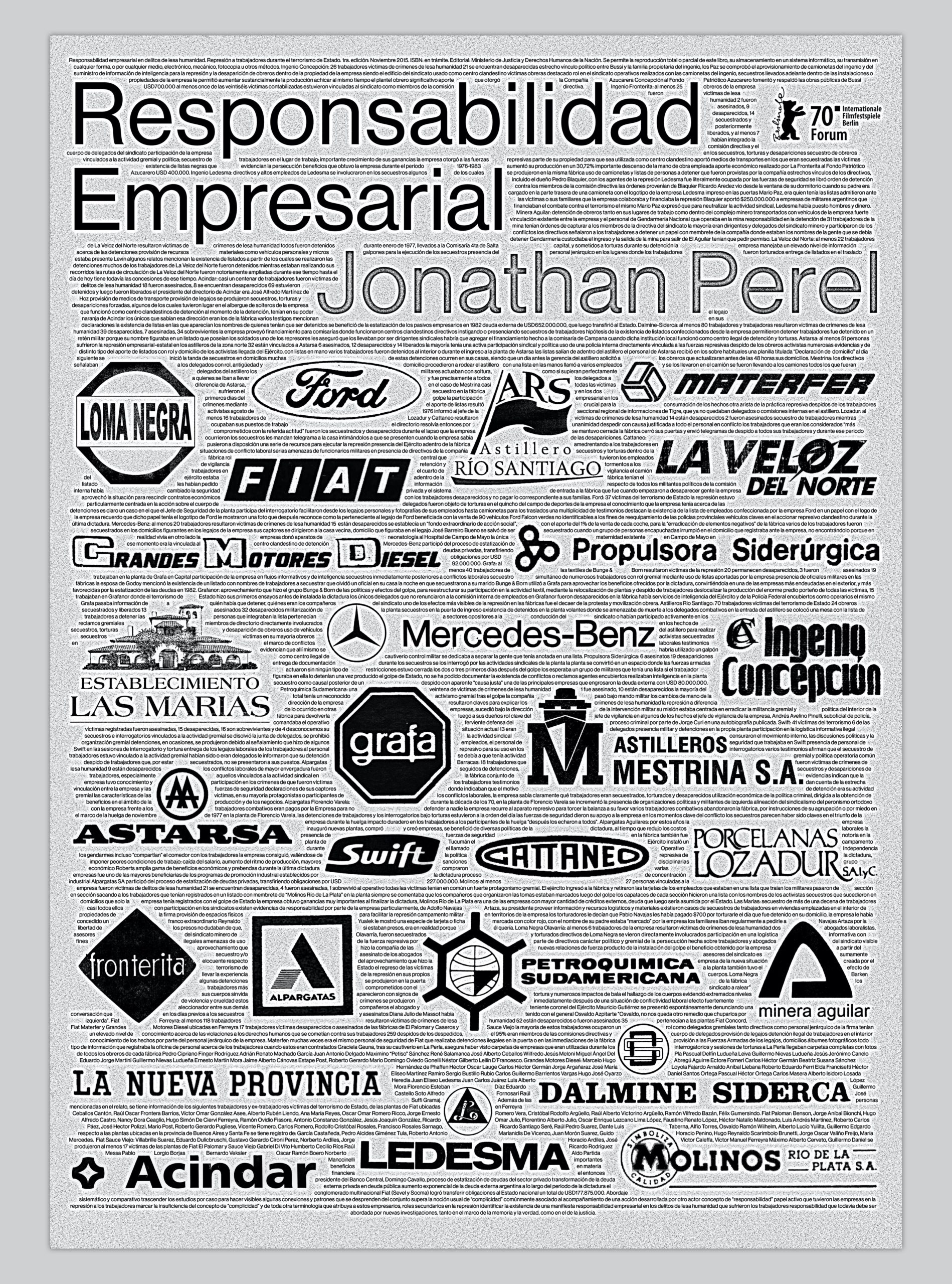 Bajo un mismo compromiso que anuda memoria, verdad y justicia, surge el libro que lee Perel, un volumen realizado de manera conjunta por el Área de Economía y Tecnología de la FLACSO Argentina, el CELS, la Secretaría de Derechos Humanos (SDH) y el Programa Verdad y Justicia del Ministerio de Justicia y Derechos Humanos de la Nación en 2015, Responsabilidad empresarial en delitos de lesa humanidad durante el terrorismo de estado, primer análisis sistemático abocado a detallar menos una connivencia que una responsabilidad.