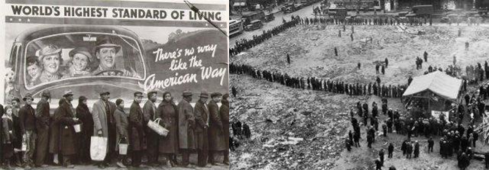 No por casualidad se han republicado ahora fotos de las largas colas de desocupados que durante la depresión de hace 90 años, aguardan en las calles para recibir una ración de comida. Ahora las colas se reproducen en largas filas de automóviles, como esta en las inmediaciones del Banco de Alimentos de Duquesne, cerca de Pittsburgh.