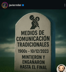 La ofensiva oficial incluyó una inquietante reflexión presidencial ("la gente no odia lo suficiente a los periodistas"), declaraciones ofensivas contra Carlos Pagni y Jorge Fontevecchia y un encontronazo del asesor presidencial Santiago Caputo con el fotógrafo de Tiempo Argentino Antonio Becerra, mientras el Altavoz Navarro se recuperaba de un golpe en la nuca que le produjo un hematoma. También la publicación en las redes antisociales de una lápida fúnebre.