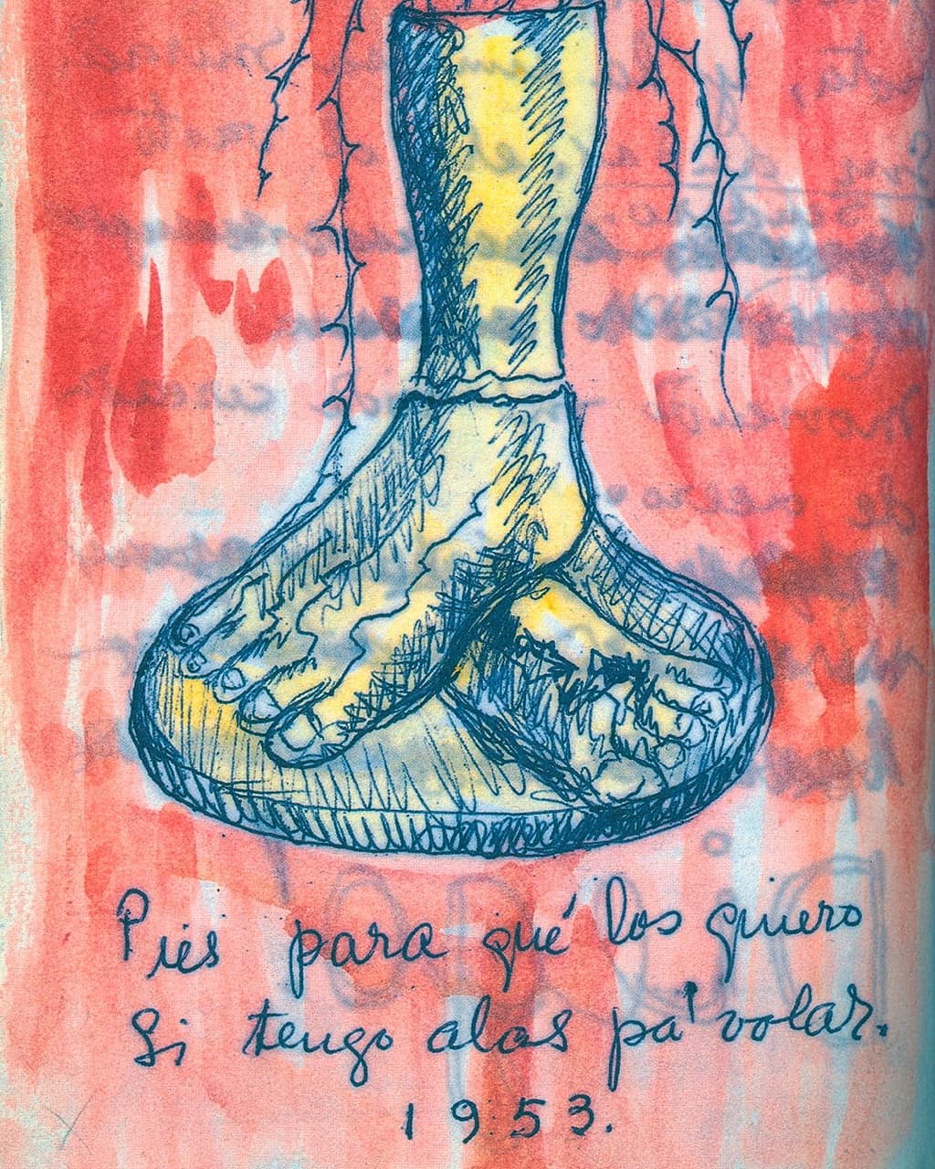 En rigor, fuera de anotaciones breves y dispersas, los aspectos biográficos ocupan apenas seis páginas manuscritas (de donde se reproducen aquí breves porciones), redactadas sin preámbulo ni conclusiones, ilustradas en forma esporádicas mediante bocetos a mano alzada. Intercala de modo condensado algunos acontecimientos, anecdóticos o cruciales, con reflexiones al pasar y contundentes tomas de posición. “11 de febrero de 1954. Me amputaron la pierna hace 6 meses. Se me han hecho siglos de tortura y en momentos casi perdí la razón. Sigo sintiendo ganas de suicidarme. Diego es lo que me detiene por mi vanidad de creer que le puedo hacer falta. Él me lo ha dicho y yo le creo. Pero nunca en la vida he sufrido más. Esperaré un tiempo”. Luego, de inmediato, un cambio de ánimo: “Que viva la alegría, la vida. Diego, Tere, mi Judith y todas las enfermeras que me han tratado maravillosamente bien. Gracias porque soy comunista y lo he sido toda mi vida. Gracias al pueblo soviético, al pueblo chino, checoslovaco y polaco y al pueblo de México, sobre todo el de Coyoacán donde nació mi primera célula, que se incubó en Oaxaca, en el vientre de mi madre, que había nacido ahí, casada con mi padre, Guillermo Kahlo”.