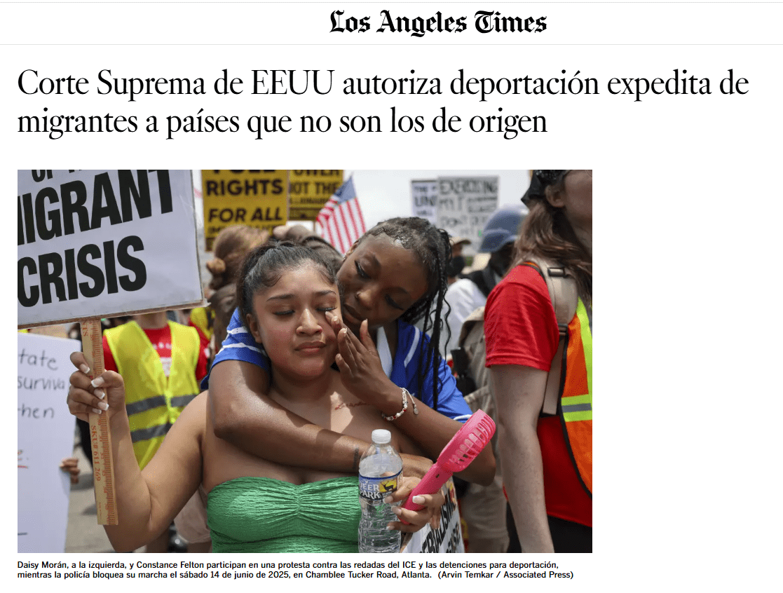 Pese a las protestas y presentaciones judiciales que se han realizado en Estados Unidos, la Corte Suprema de Justicia de ese país autorizó a Trump a reanudar las deportaciones expeditas de migrantes a países distintos al de origen, levantando por ahora una orden judicial que requería que se les diera la oportunidad de impugnar las deportaciones.