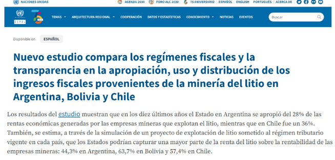 Sin embargo, los datos de un trabajo de la CEPAL y Naciones Unidas del autor Michael Jorratt, publicado en 2022 y titulado Renta económica, régimen tributario y transparencia fiscal de la minería del litio en la Argentina, Bolivia (Estado Plurinacional de) y Chile contradicen esta afirmación tan extendida: