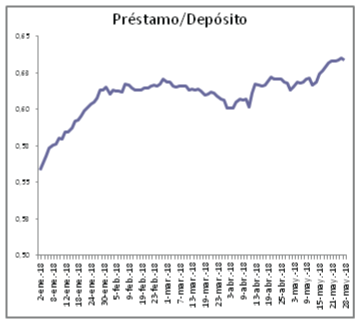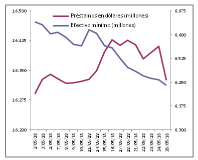 El ritmo del dólar es imbatible. El 3 de enero el mayorista cotizaba a 18,45. Al cierre de mayo, rondó los 24,96 pesos. Desde que comenzó el año, la depreciación acumula un 35%, con lo cual ya supera el 150% desde el inicio del gobierno. La corrida podría haber sido mucho mayor si el BCRA mantenía firmes sus ideas de no intervenir en el mercado de cambios. Cuando Federico Sturzenegger lanzó su pomposo plan de metas de inflación dijo que el dólar no debía estar sujeto a intervenciones cambiarias. Sin embargo, en cada una de las intervenciones que la mesa de dinero de la autoridad monetaria realizó durante estos dos meses, pisoteó cada vez más fuerte sus creencias monetaristas. Lo hizo al decir que no le preocupaba el precio del dólar, mientras vendía más de 10.000 millones de las reservas internacionales; al intervenir en el mercado de futuros cuando el compromiso de reservas liquidadas había alcanzado el 12% y también cuando levantó la bandera de la independencia de la institución pero pasivamente aceptó que el Ministro de Finanzas le maneje directamente la mesa de operaciones en los dos días previos al Supermartes. No es ningún secreto que la muralla de 5000 millones de dólares que el Central mantiene activa en el mercado mayorista, es también una estrategia de intervención cambiaria pasiva, diseñada por Caputo, que todavía está operando con plena vigencia. Con el correr de los días, esta oferta de dólares a 25 dejará de ser un techo y pasará a consolidar un nuevo piso. La pregunta que todos se hacen es quién financia la muralla, es decir cuáles son los dólares de disponibilidad inmediata para abastecer la demanda en caso de una nueva aceleración del ritmo de la corrida cambiaria. Desde el 2 de mayo los depósitos en dólares del sector privado comenzaron a descender, mientras la colocación de préstamos se mantuvo constante en torno a los 16.000 millones de dólares. Por esta razón, desde enero de 2018 en adelante el coeficiente préstamo/depósito del sector privado creció un 8%.