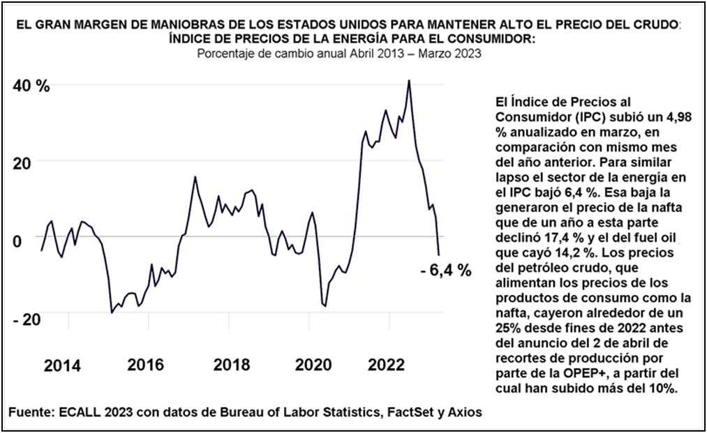 Con este telón de fondo, a principios de abril –y sorpresivamente– la Organización de Países Productores de Petróleo (OPEP) Plus, que incluye a Rusia, anunció que a partir de mayo reducirá la oferta de crudo en más de un millón de barriles. Ya más que se duplica el déficit de oferta estimado por la AIE. Con el barril de Brent saltando de 70 a 87 dólares, se reavivaron los temores inflacionarios. Usualmente se presenta al episodio como otra prueba de las malas relaciones entre los otrora culo y calzoncillo Estados Unidos y Arabia Saudí, reino que –para mayor bronca de los gringos– marida con Rusia y China.