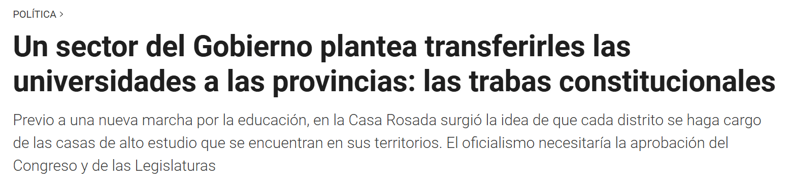 En ambos casos, se trató de ajustes velados. El experimento actual dejó trascender una apelación a ese clásico del recetario neoliberal con la opción de transferir las desfinanciadas Universidades Nacionales a las provincias, pero no avanzó en la idea ni encontró plafón para llevarla a la práctica.