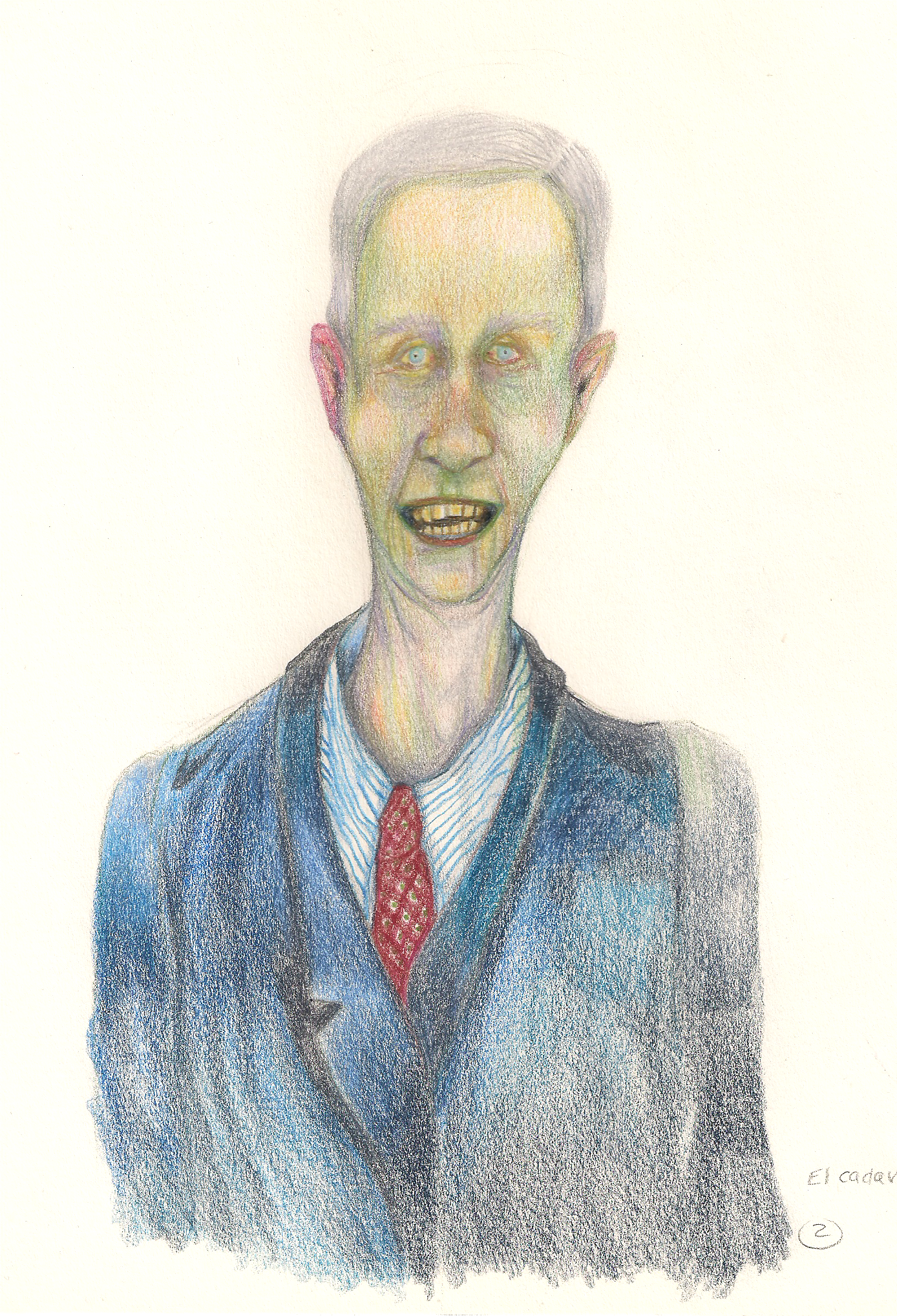 En mi edificio vivía uno de ellos, al que cariñosamente y para mí yo llamaba El Cadavercito. Era un señor amabilísimo y simpático. Además de los trajes, conservaba las rutinas de cortesía que se estilaban en su juventud. Me abría la puerta, me esperaba en el ascensor y me cedía el paso con una gran sonrisa de su calavera, equipada con los dientes más blancos que el dinero puede comprar. Yo creo que él percibía cuánto me gustaba y cuánto me asombraba verlo con tanta apariencia de vida. Una tarde, mientras sostenía la puerta para dejarme pasar, me dijo: