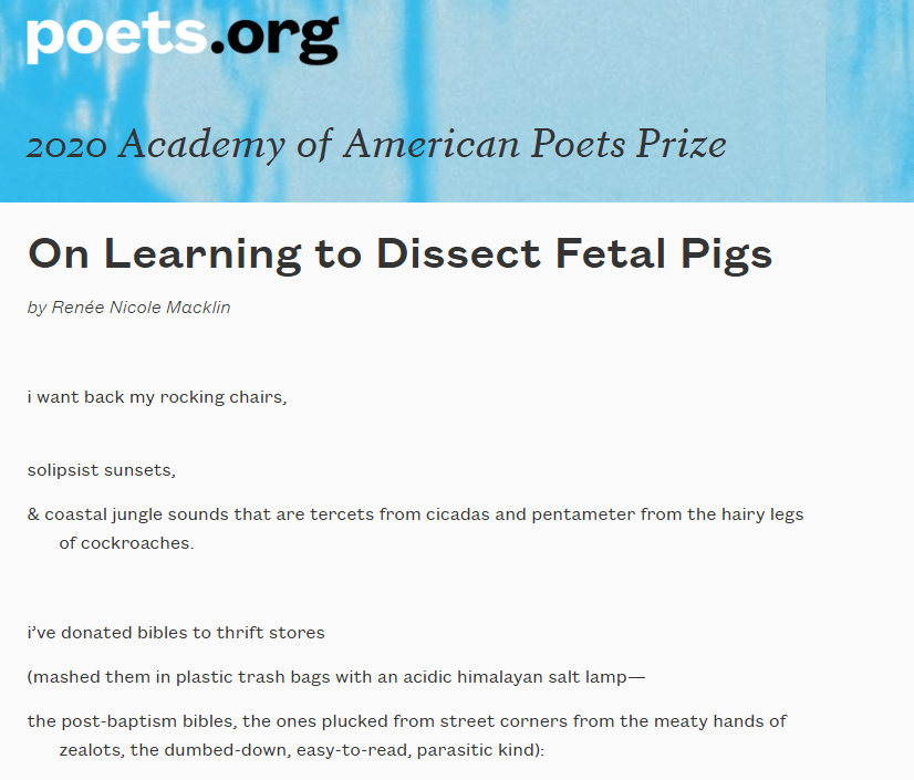 * La versión del texto aparece oficialmente en el sitio de la Academy of American Poets, donde el poema figura como ganador del premio del año 2020.