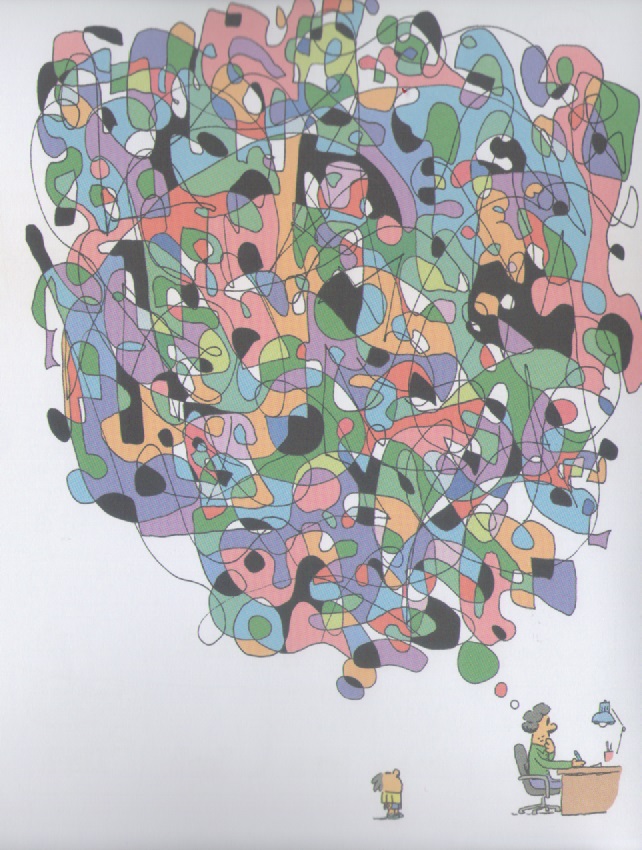 Destino manifiesto, no menos que elegido, el tablero de dibujo se hace presente ligado a una ética del trabajo y con ello los trabajadores del plumín: Ferro dando clase, el Negro Fontanarrosa compartiendo veraneos, la escuela de Garaycochea. Y las claves solidarias con el novato, transmitidas por cada uno de los próceres: Tabaré (“Probá jugar más con las perspectivas”, Sendra (“Dale a los juegos de palabras”), Crist (“¡Soltá la mano!”), Quino (“Hay que meter el dedo más en la llaga”).