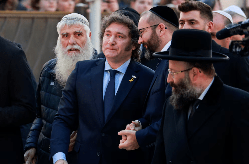 La Argentina se destaca en la actualidad por cuanto su Presidente ha sido cooptado por el misticismo religioso en su versión extrema, mediante otro recurso de los colonialismos: la instrumentalización de las religiones al servicio de proyectos de dominación. Cuando Milei llora en el Muro de los Lamentos no está expresando el pesar de un judío por la destrucción del Segundo Templo, sino lealtad a los sionistas genocidas Trump y Netanyahu, y a uno de sus vástagos en nuestro país, Eduardo Elsztain; es la misma motivación que lo lleva a manifestar “soy el Presidente más sionista del mundo” y a anunciar el traslado a Jerusalén de la embajada argentina en Israel. Es probable que no le hayan pedido tanto: esas sobreactuaciones delatan, exacerbadas por su impenitente histrionismo. La lógica es la misma con la que sus jefes intentan justificar la guerra de Estados Unidos e Israel contra Irán, Palestina y el Líbano, presentándola como un conflicto entre religiones, la “guerra contra el terrorismo motivado por fanatismos religiosos”, y no como lo que es: un capítulo más del expansionismo yanqui-israelí en el marco de su compartido proyecto colonial resistido por los afectados.