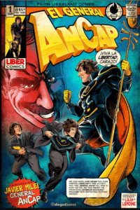 Hace tres décadas, el Presidente liberal Luis Alberto Lacalle sancionó una ley y convocó a un referéndum constitucional para privatizar ANCAP y otras empresas públicas, al estilo de lo que estaba haciendo en la Argentina el Presidente Carlos Menem. En diciembre de 1992, más del 70% de los votos rechazaron las privatizaciones. Milei se autodenomina Capitán AnCap por lo menos desde mayo de 2020 y su traje fue diseñado por su maquilladora y amiga, la cosplayer Lilia Lemoine, pero ahora lo ha lanzado como un comic en inglés.