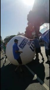 Bronca va y viene, hubo un hito mayúsculo en la muerte acaecida en la Plaza de Mayo en la asunción de Alberto y Cristina. Aprovechando una falta de elemental custodia, los muchachos de Bustinduy bajaron a la víctima y la apuñalaron hasta su muerte por falta de aire. El inflable blanco con letras azules estaba repleto de gas helio que hacía reír: “Fernández Conducción U.T.A.” murió en su ley.