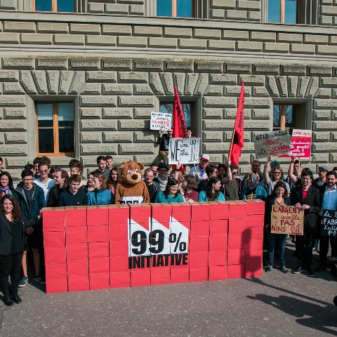 “Los más ricos de Suiza poseen el 43% de la fortuna total del país, y sin mover un dedo, se hacen cada vez más ricos. Gracias a los dividendos e intereses multiplican su dinero sin pagar impuestos sobre el mismo. Con la Iniciativa 99% la imposición será más justa y descargaremos a los asalariados (as)”, explican los jóvenes socialistas, primeros promotores de esta propuesta. Para asegurar que su iniciativa pudiera ser motivo de votación presentaron a las autoridades federales electorales 134.000 firmas en septiembre del 2019.