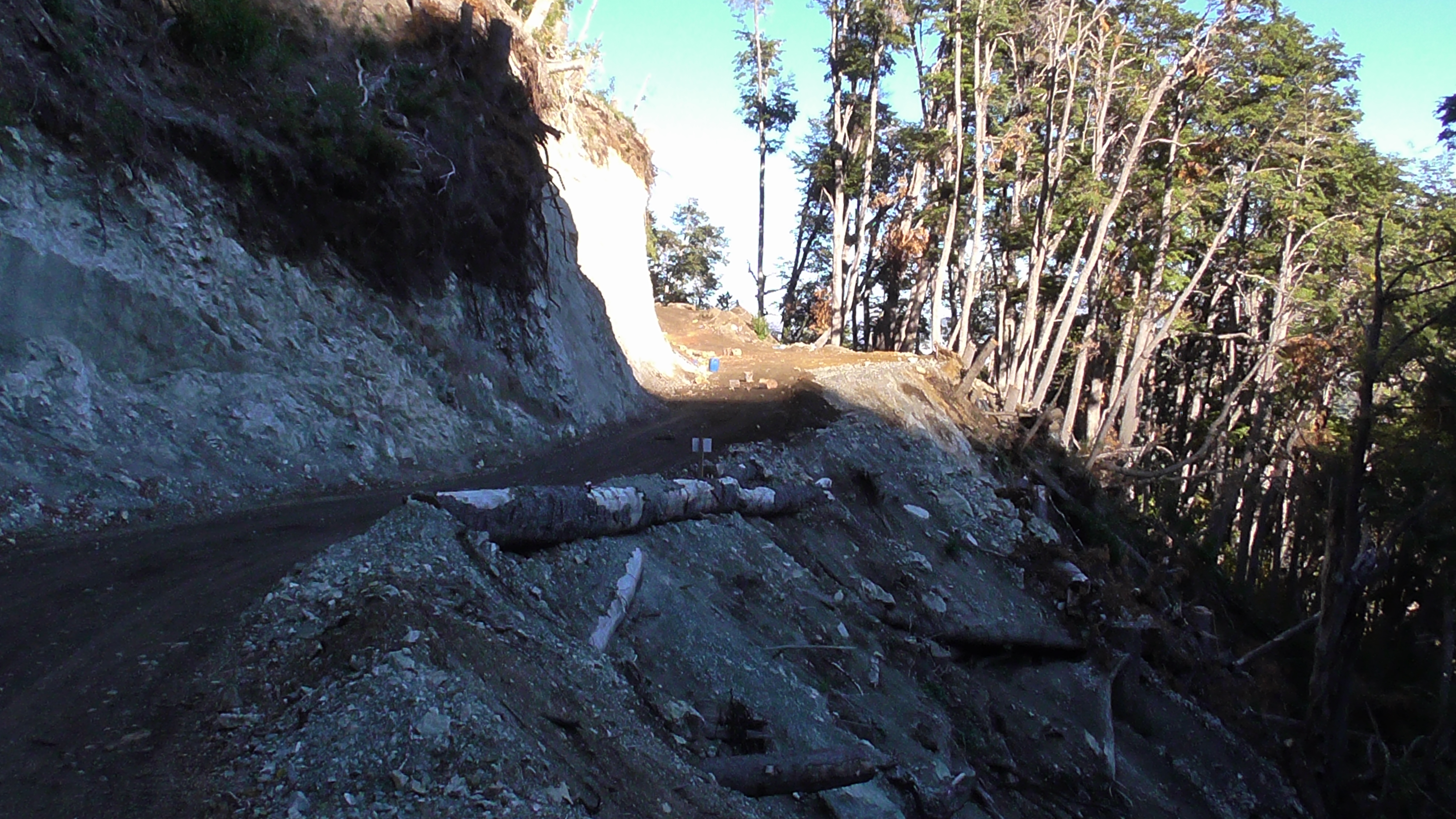 El Fideicomiso Lago Correntoso, inscripto en 2010 e integrado por capitales ligados al macrismo, contrató a la empresa Servicio Confluencia de Neuquén para el volteo de bosque nativo y la apertura de un camino de acceso sobre la empinada ladera del cerro falso Belvedere, en Villa La Angostura. En las últimas semanas la contratista intensificó el ritmo de las labores para la apertura inicial de 2700 metros de camino, de los que llevaban hechos 900 al momento de nuestro último registro documental. En algunos tramos el talud formado es de hasta 5 metros aproximadamente, quedando a la vista las capas de suelo removidas. A simple vista se observa la capa superficial de tierra que sostiene el sotobosque y el bosque sobre la roca cortada con martillo neumático.