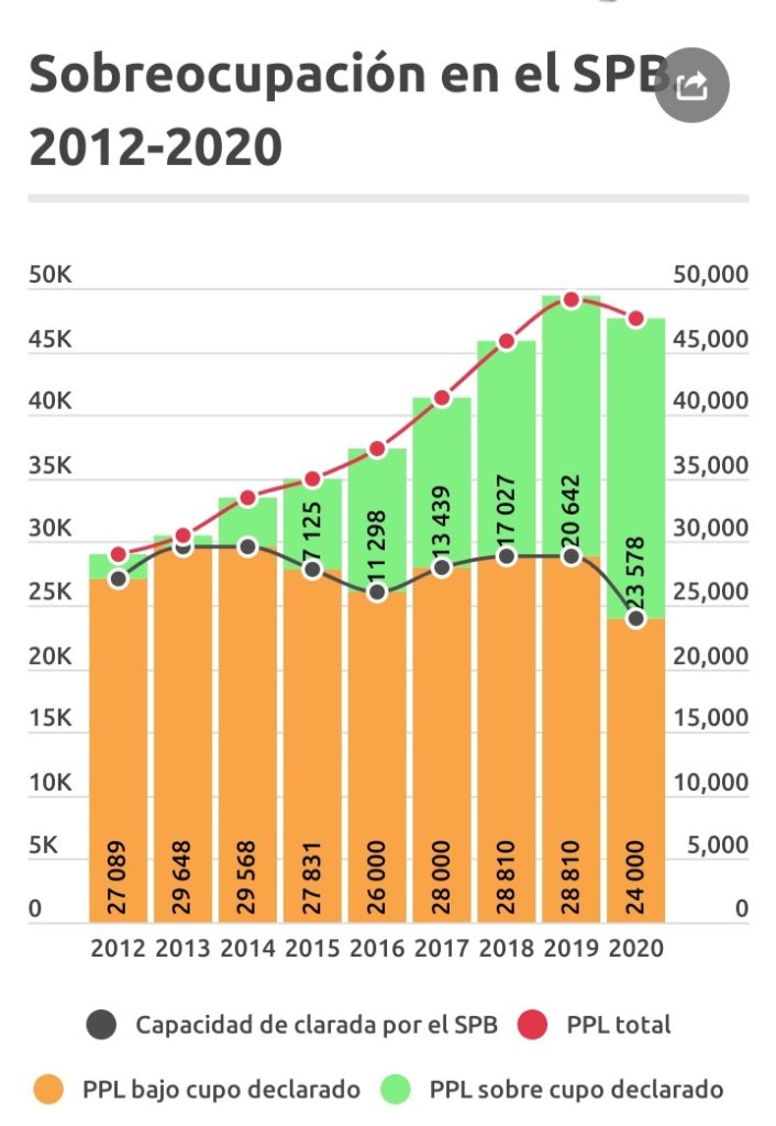 Más allá de unos años de mejora, durante el tiempo inmediatamente posterior al fallo de 2005 la situación volvió a agravarse. A partir de 2012, la población penitenciaria total pasó de 30.000 detenidos a casi 50.000.