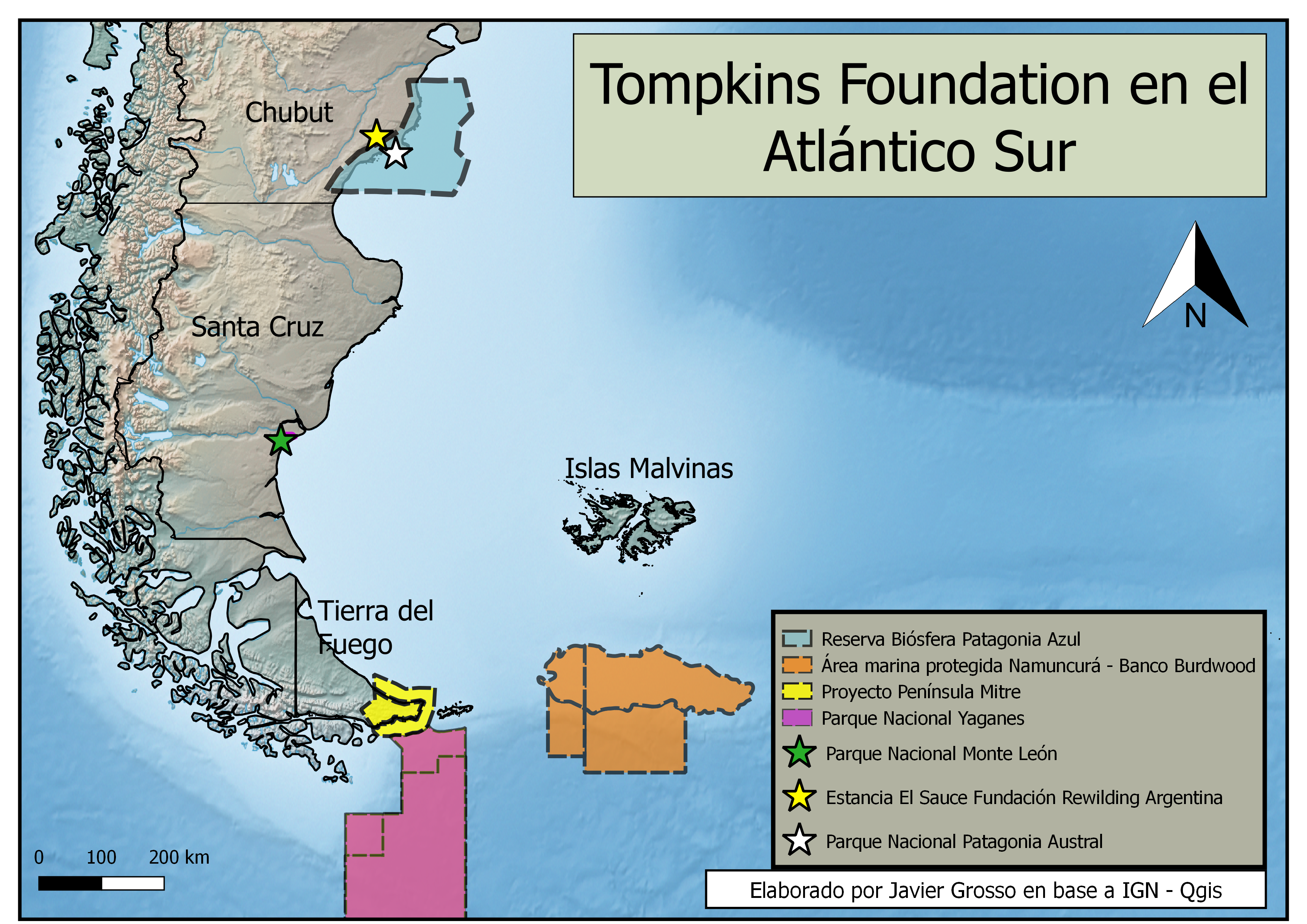 En la Argentina, el grupo Tompkins Conservation (TC) desplegó su radio de interés y acción desde tierras costeras hacia aguas continentales marinas bajo jurisdicción nacional. La compra y donación de tierras para la creación del Parque Nacional Monte León en Santa Cruz le permitió proyectar e iniciar un despliegue en dos espacios de la Patagonia, en la cordillera y en el mar. Avanzó en Santa Cruz, quedó paralizado en Chubut, tiene seria resistencia en Tierra del Fuego (TdF). El frente marino es tal vez el menos debatido en sus alcances profundos, con reservas alimentarias y genéticas de altísimo valor estratégico para la vida en el planeta.