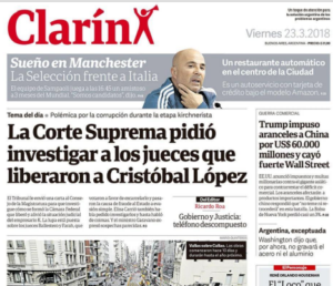 - Asimismo, sostuvo, “ante la amplia y negativa repercusión pública que esa decisión tuvo, la Corte Suprema de Justicia de la Nación promovió ante el Consejo de la Magistratura que se investigue de qué modo se integró con el suscripto la Sala I de la Cámara Federal para la decisión del caso”.