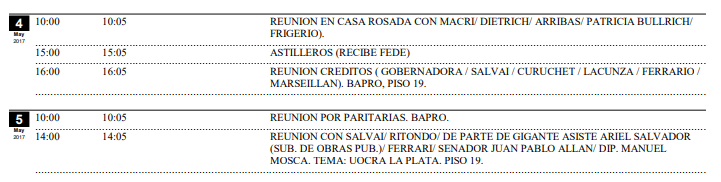 La gobernadora Vidal llegó a la Casa Rosada el jueves 24 de agosto, dos minutos antes que Villegas, quien iba a ver a Mauricio Macri para una reunión de más de tres horas. Así consta en el libro de ingresos, donde quedó registrado que Vidal y su ministro salieron a la misma hora.